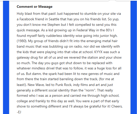"The most radical radio show in the country" - Bruce Pavitt, SubPop
